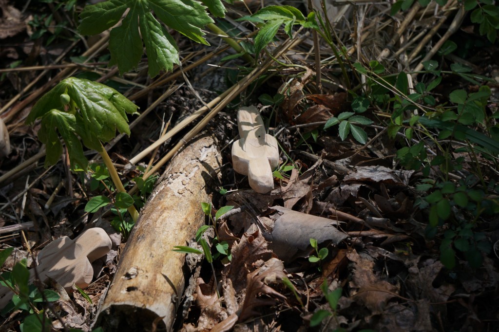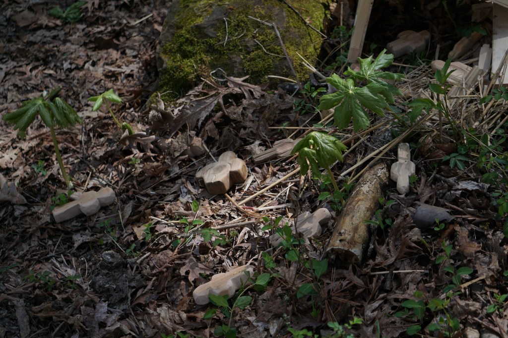 The FOREST DROP project experiments with the capabilities of nature to imbue objects with power, combined with the experiential effects of possible discovery. A set of buddies was deposited in a well-traveled forest, off the beaten path but not completely hidden, awaiting discovery.