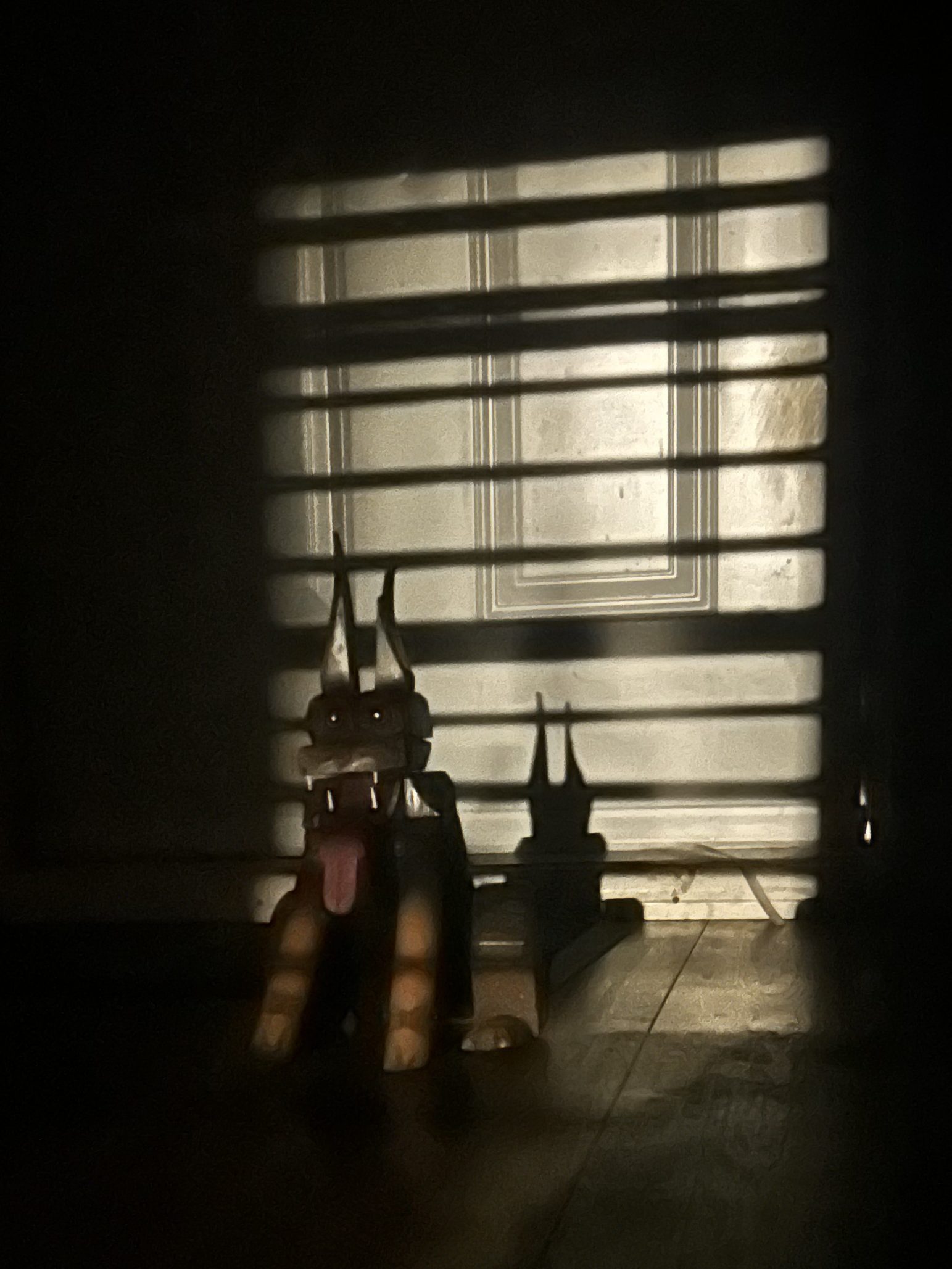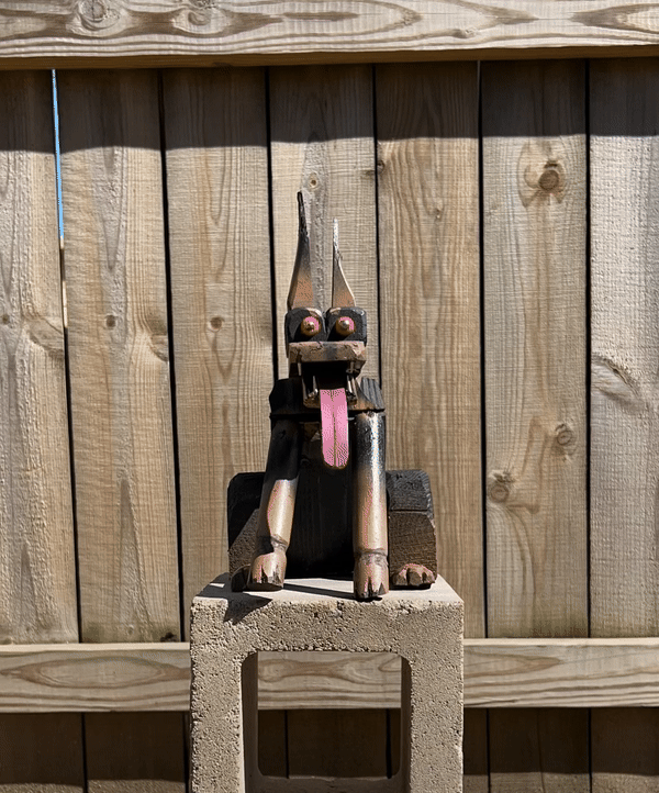wood scraps, bamboo skewers, glue, leather, spray paint, fake cranberries, and one found earring