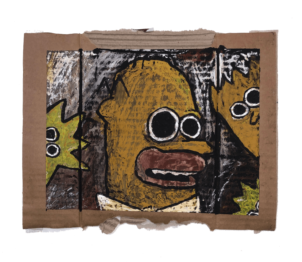 oil paint sticks on found cardboard