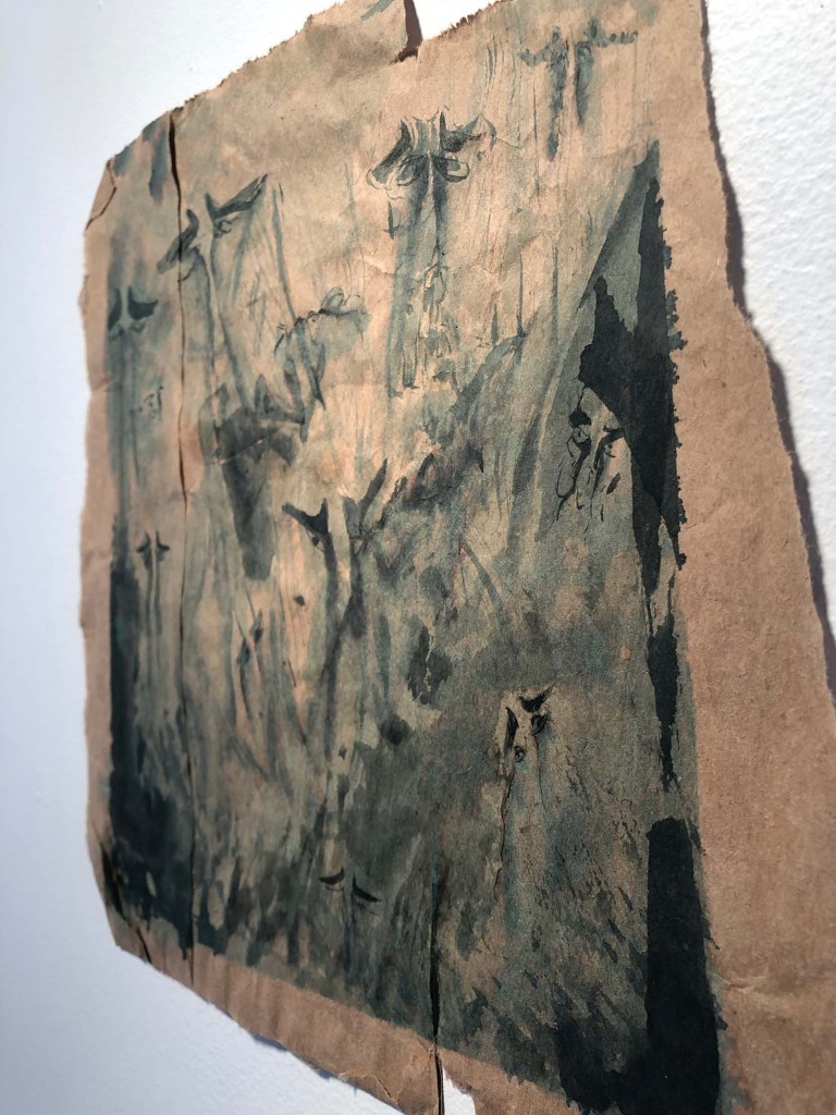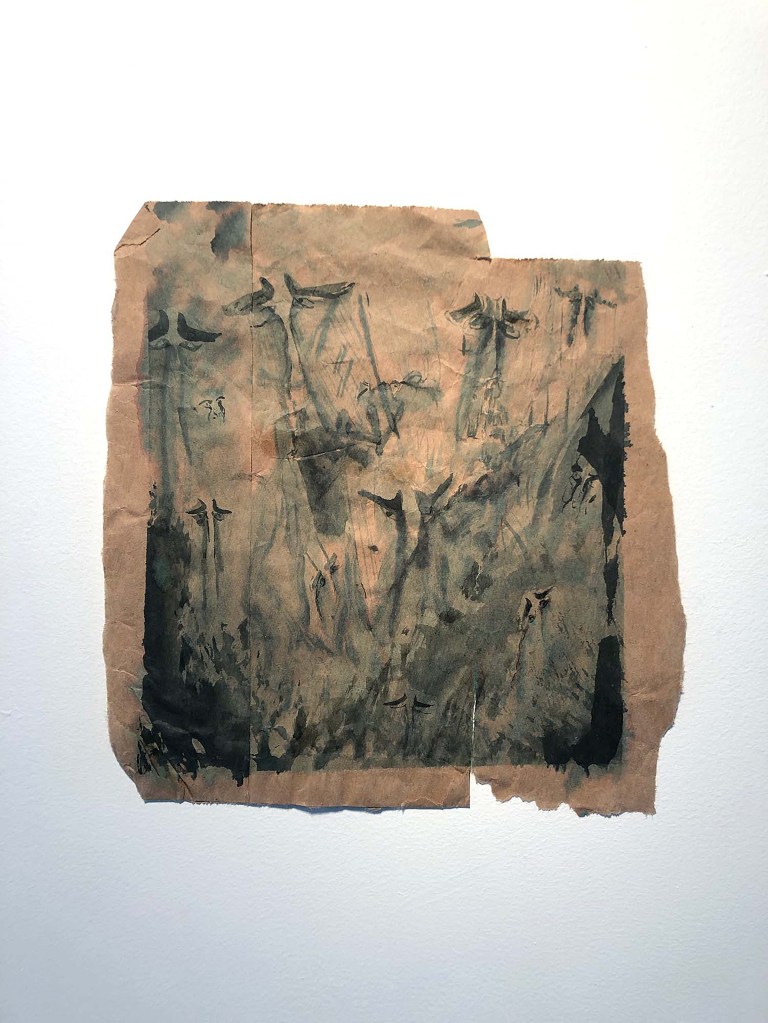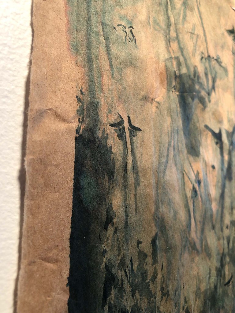 ink wash on paper bag